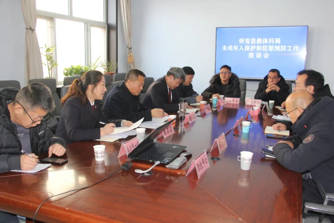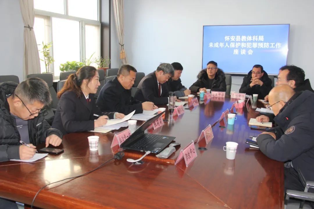 临近岁末,寒假将至。为进一步深化检校协作,加强未成年人保护和预防未成年人犯罪工作,近日,怀安县检察院、县教体科局召开座谈会。县检察院党组书记、检察长杨汉成,怀安县教体科局党组书记、局长乔建有参加会议并讲话。