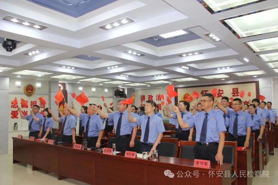 6月27日上午,怀安县人民检察院举行隆重举行“喜迎七?一 检心向党”庆祝建党104周年主题党日活动,通过系列活动重温党的光辉历程,强化使命担当。