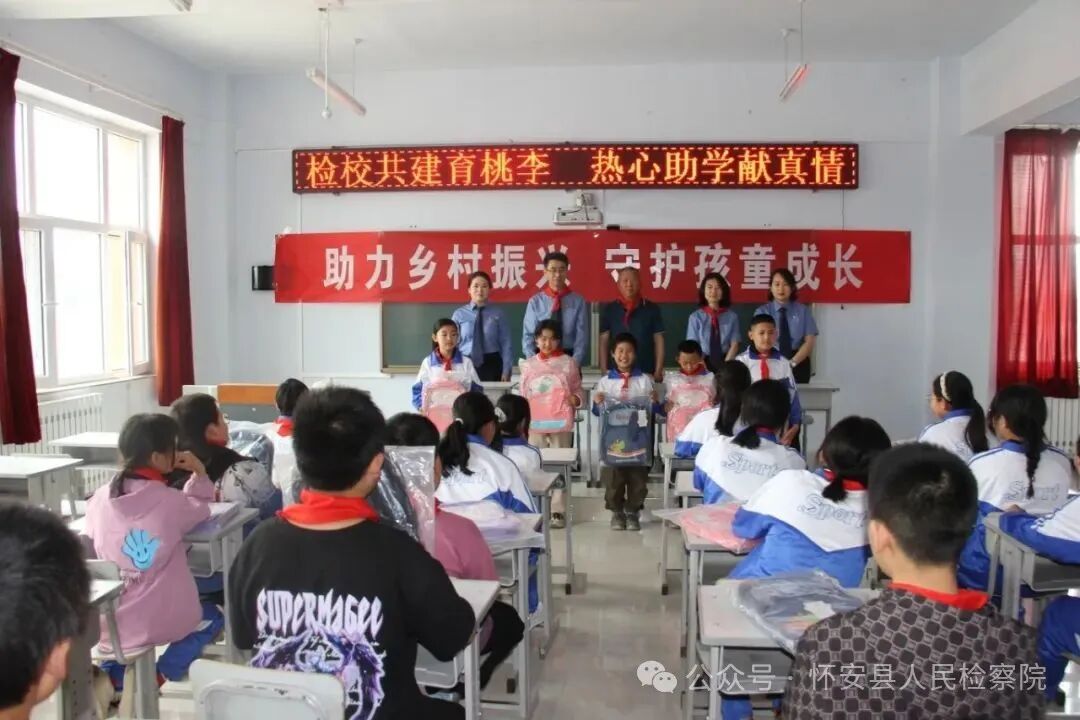 宣讲结束后,检察干警给学生们赠送了精心准备的“六一”儿童节爱心书包和学具。一份份饱含着关爱与期望的书包传递到孩子们手中,现场洋溢着欢乐温馨的节日气氛,孩子们脸上绽放出灿烂的笑容。