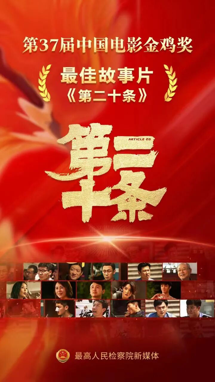 11月16日,第37届中国电影金鸡奖在福建省厦门市举行颁奖典礼。由最高人民检察院影视中心等联合出品的电影《第二十条》获金鸡奖最佳故事片奖,片中饰演检察官韩明的雷佳音获最佳男主角奖。